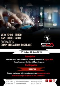 Le Centre Dynamique Afrique (CDA) lance une formation dédiée aux jeunes entrepreneurs, startups, professionnels et étudiants désireux d’acquérir des compétences pratiques en communication digitale, notamment :